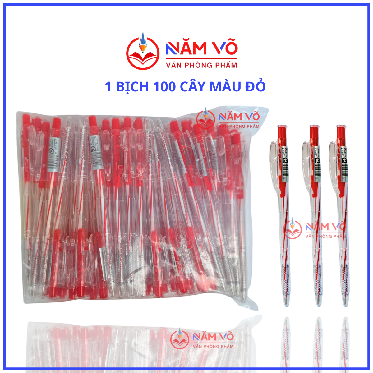 Bịch 100 Cây Bút Bi - Viết Bi Đầu Bấm Mực khô Aihao 027 / 207 / TL027 Ngòi 0.7mm (Mực Xanh, Đỏ, Đen) Chất Lượng Tốt, Viết Êm, Mực Đều