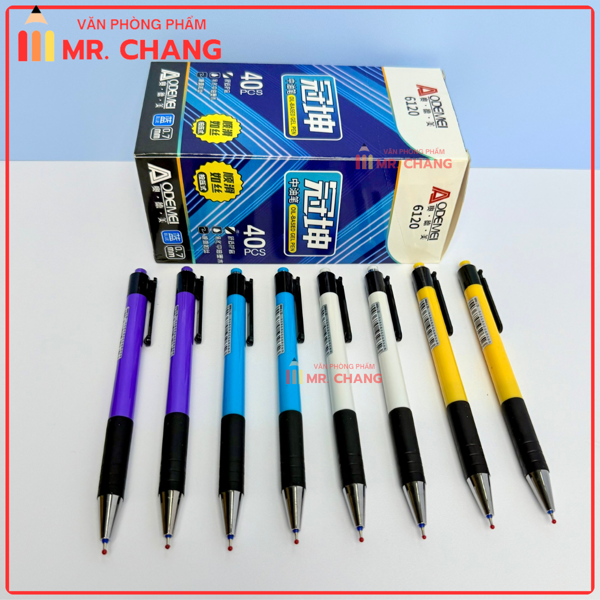 [6120] HỘP 40 Cây Bút Bi Bấm / Viết Bi Bấm AODEMEI 6120 Ngòi 0.7mm MỰC XANH, Viết Êm Ái, Mực Đều, Có Nệm Tay Cầm