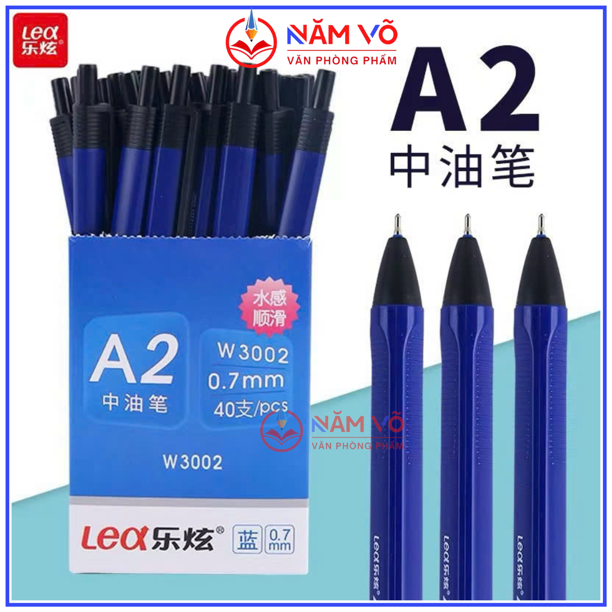 HỘP 40 Cây Bút Bi Bấm / Viết Bi Bấm LEX A2 W3002 6119 Ngòi 0.7mm MỰC XANH - Mực Đều, Viết Êm (Giao ngẫu Nhiên A2 Lex, 6119, King TR03)