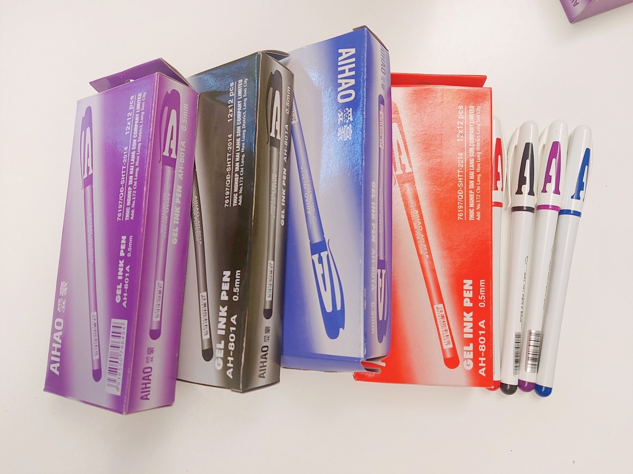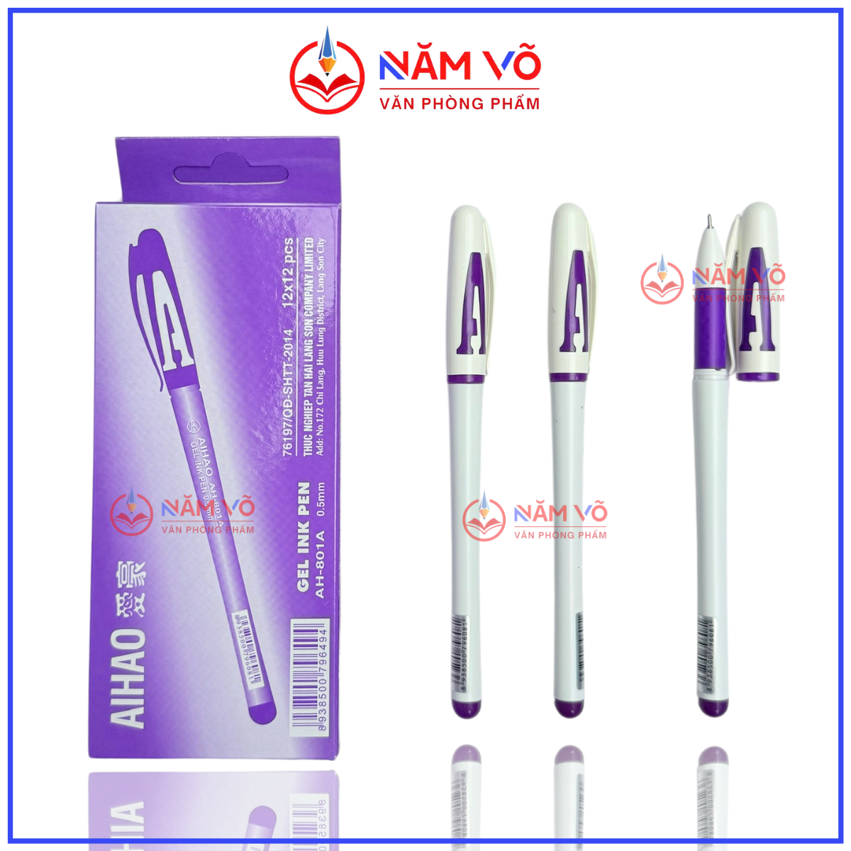 [801A] HỘP 12 Cây Bút Chữ AAA - Viết Chữ AAA Aihao AH 801A Ngòi 0,5mm Chất mực Cao Cấp, Viết Êm (Mực Xanh, Tím, Đỏ, Đen)
