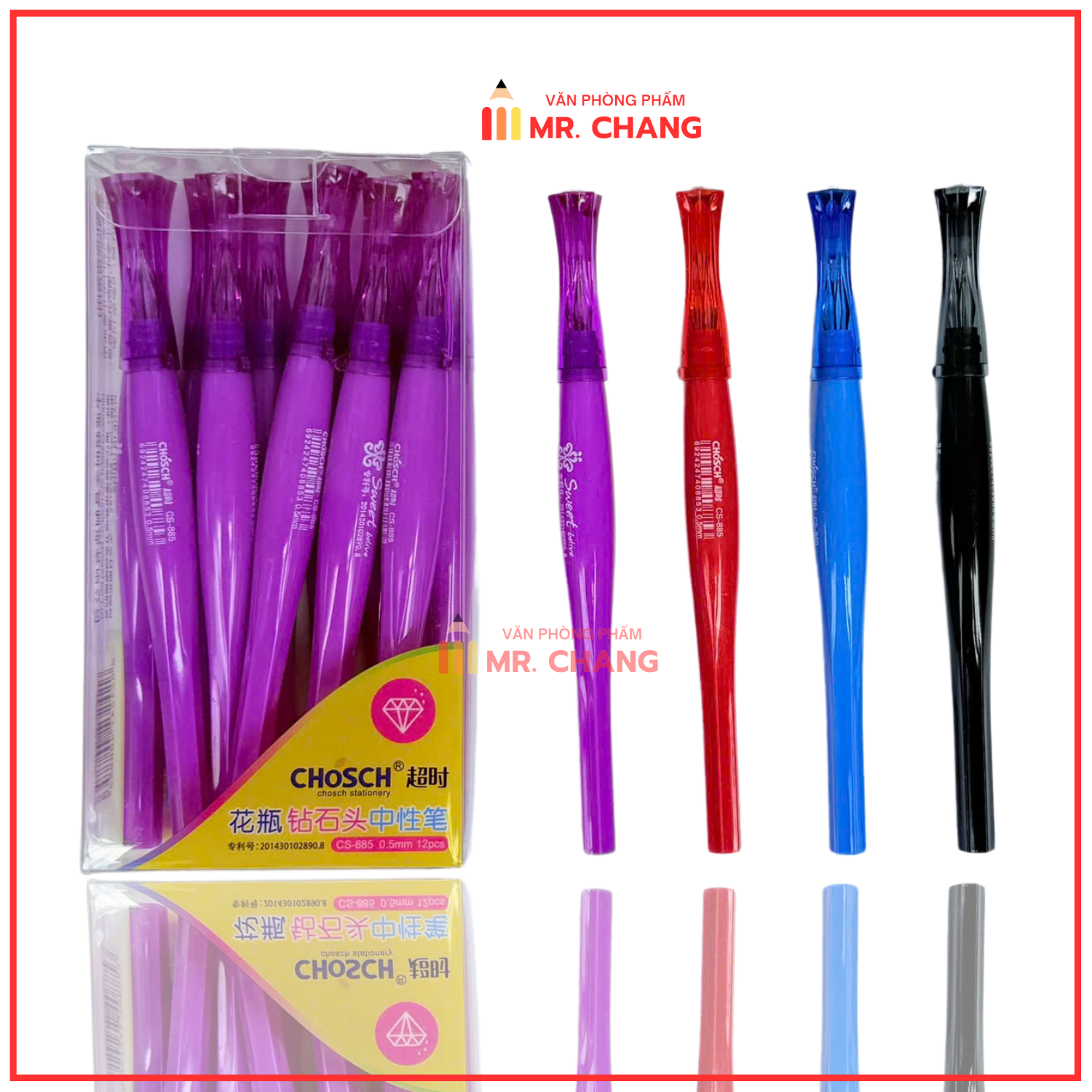 [CS885] HỘP 12 Cây Bút Viết Gel Mực Nước Nắp Hình Kim Cương Chosch CS 885/ CS-885 Ngòi 0.5mm, Thân Ú Chính Hãng