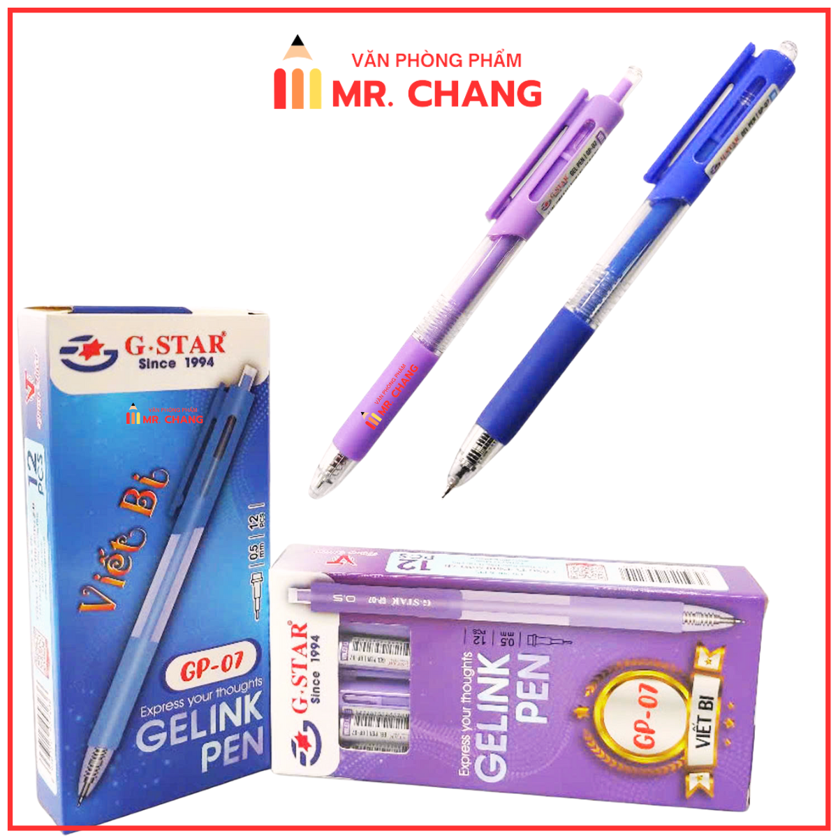 G-Star Bút Gel GP07 Ngòi 0.5mm Mực Xanh, Tím (12 Cây/ Hộp; 12 Hộp/ Lốc)