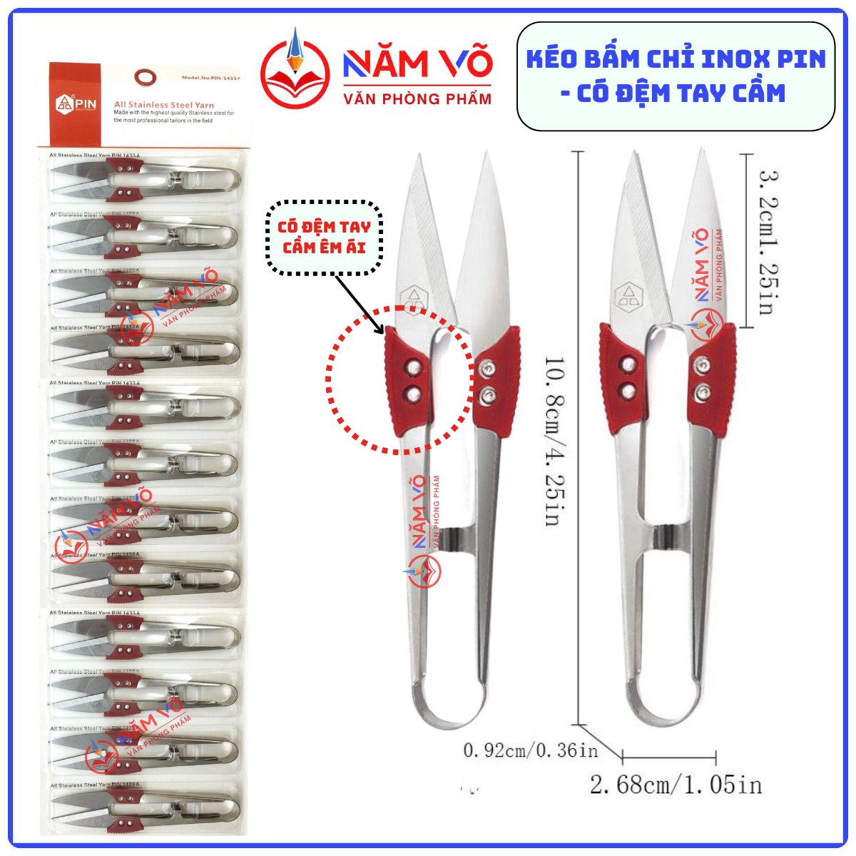 1. Kéo Cắt Chỉ Inox Đệm Tay 1433 (12 Cái/ Vĩ; 120 Vĩ/ Thùng)