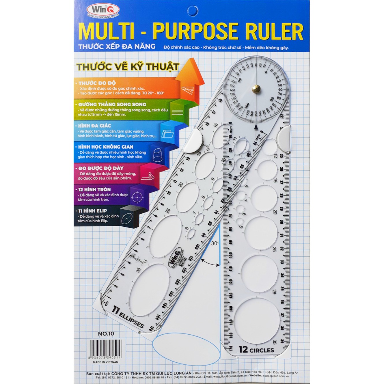 Thước vẽ kỹ thuật đa năng WinQ No.10 được thiết kế thông minh, có thể xếp gọn tiện lợi, giúp học sinh – sinh viên và người làm kỹ thuật dễ dàng thao tác.